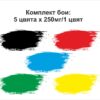 Комплект бои: зелено – 250мг, черно – 250мг, червено – 250мг, жълто – 250мг, синьо – 250мг