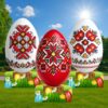 Композиция 47- 3 броя ВЕЛИКДЕНСКИ ЯЙЦА с големи ШЕВИЦИ -червено и 2 броя бели яйца